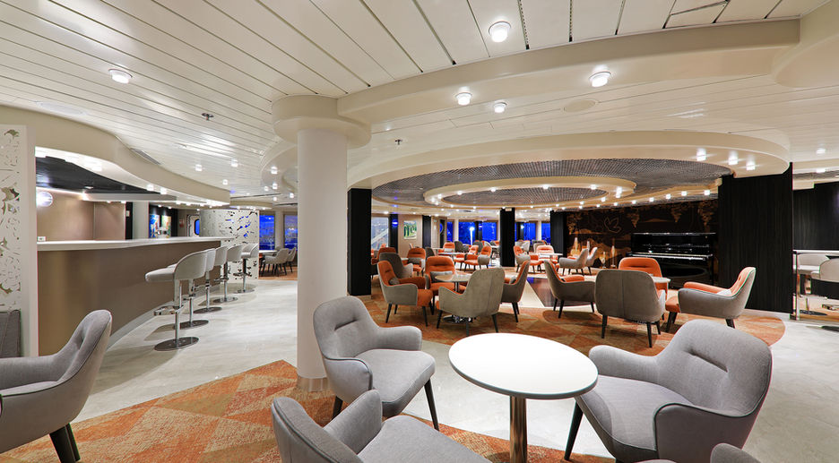 Vous pourrez rejoindre le bel espace du Grand Salon pour écouter les points d’escales, conférences, spectacles ou encore vous retirer au calme dans un des petits salons qui jalonnent la boutique et le Bar à vin, pour lire ou regarder le paysage qui défilera sous vos yeux ou encore rejoindre le sauna, la salle de fitness si le cœur vous en dit... Bienvenue à Bord !